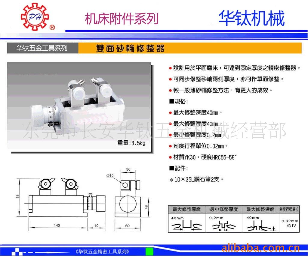 設計用于平面磨床,可達到固定厚度之精密修整器,可同步修整砂輪兩側厚度,亦可作單面修整,較一般薄砂輪修整方法,有更大的成效;