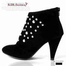 出口韓國 時(shí)尚主打 銀色鉚釘裝飾粗跟及踝靴 短靴 女靴子促銷價(jià):75.00元