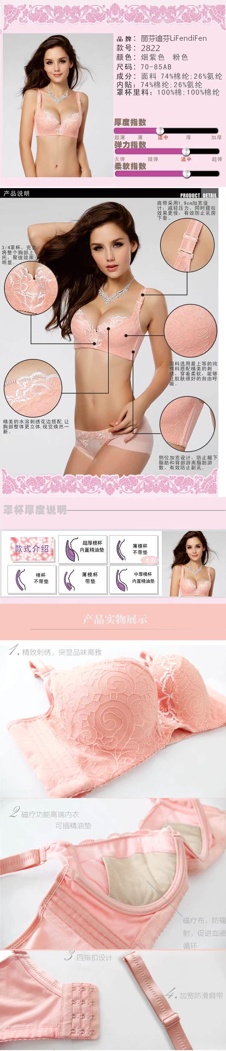 品牌: 麗芬迪芬LiFenDiFen 款號: 2882 顏色分類: 2882煙紫色 2882粉色尺碼: 70A 70B 75A 75B 80A 80B 85A 85B 罩杯型: 3/4 罩杯厚度: 中模杯 罩杯面料: 錦綸 罩杯里料: 棉 肩帶: 可拆卸雙肩帶 搭扣: 后四排搭扣 鋼圈: 有鋼圈 款式細(xì)節(jié): 刺繡 功能: 調(diào)整 文胸風(fēng)格: 奢華