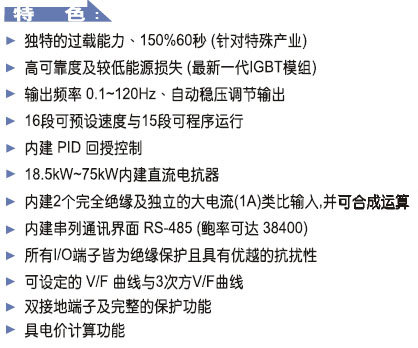 產(chǎn)品名稱: 臺達G系列--塑膠及空油壓專用型變頻器