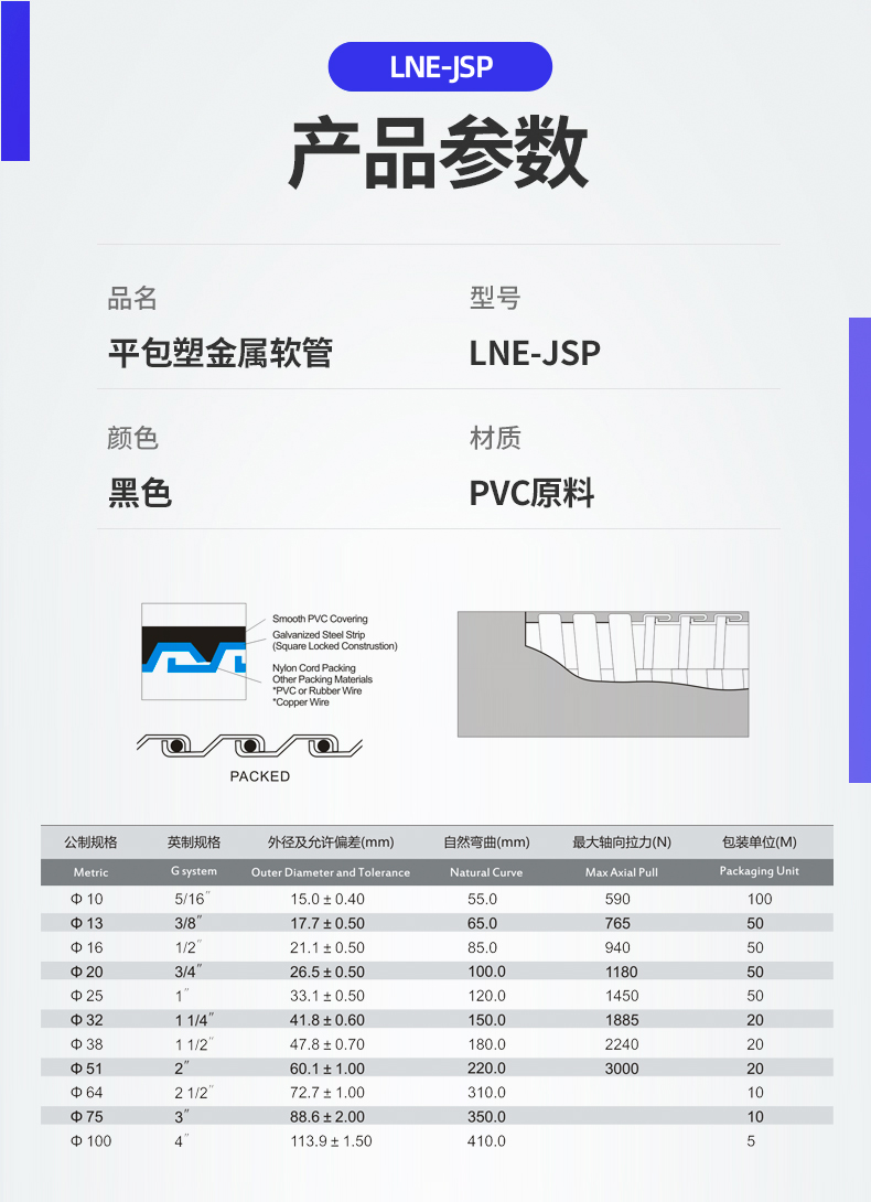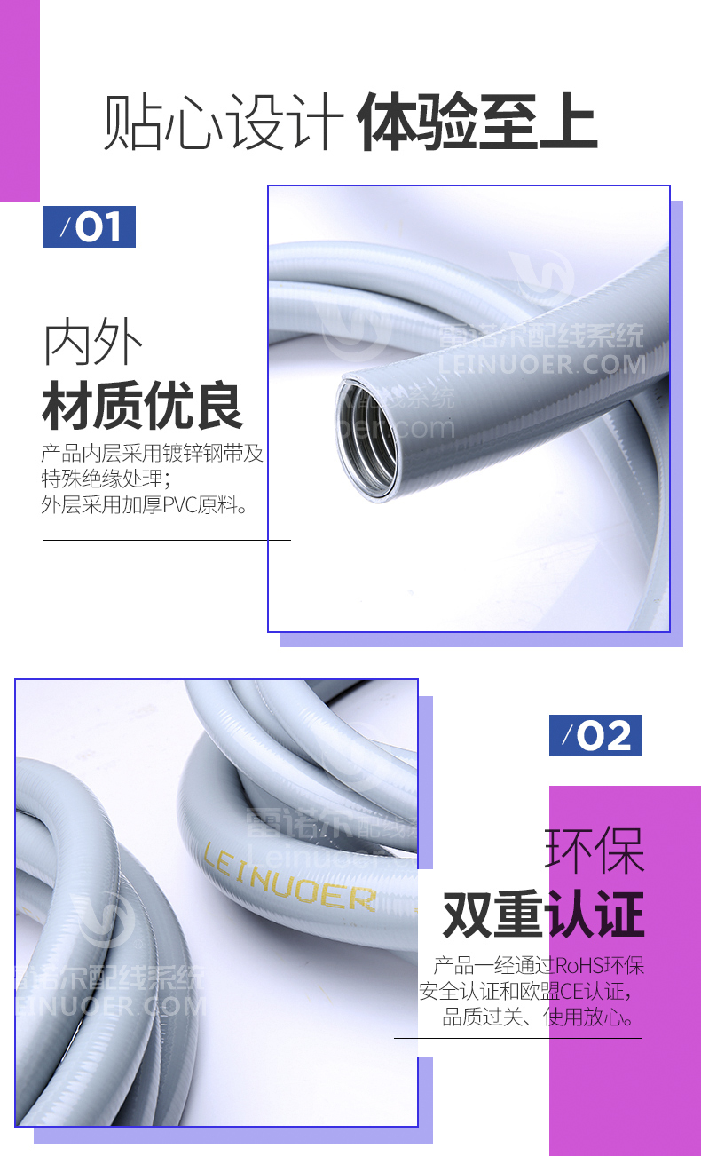 產(chǎn)品材質(zhì):(內(nèi)層)采用鍍鋅鋼帶及特殊絕緣處理;(外層)采用PVC原料(抗紫外線、防老化)