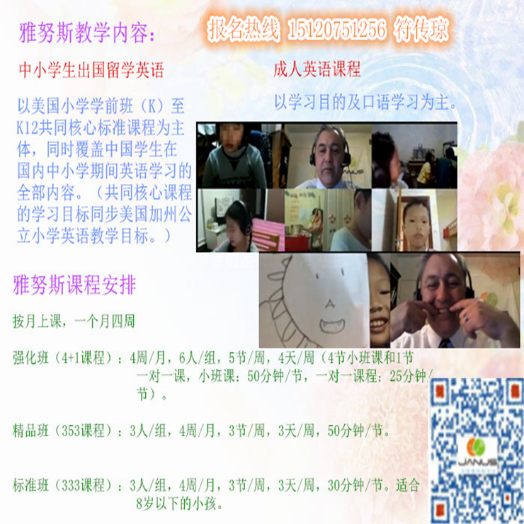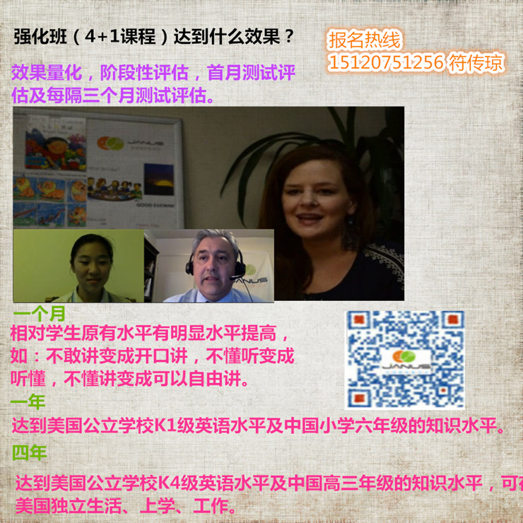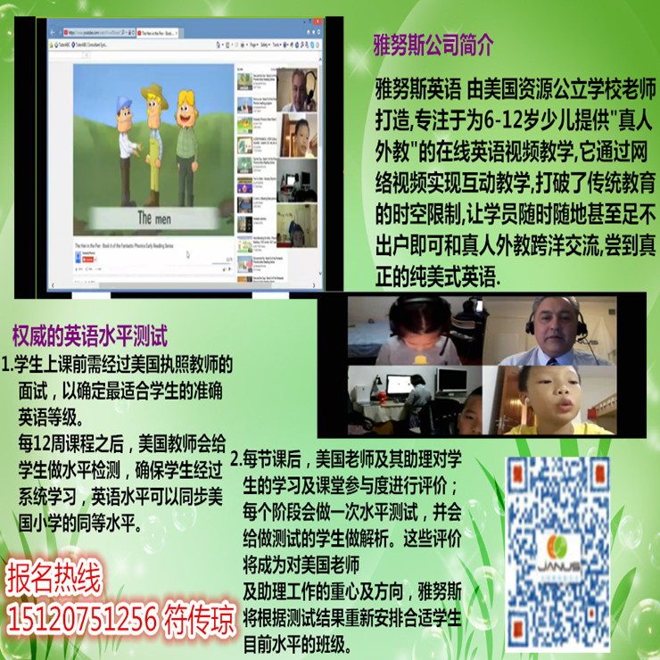 雅努斯英語在線教育——一家同步于美國中小學英語教育的在線教育,讓孩子以學習母語的方式來學習英語。(報名熱線:15120751256 符傳瓊)