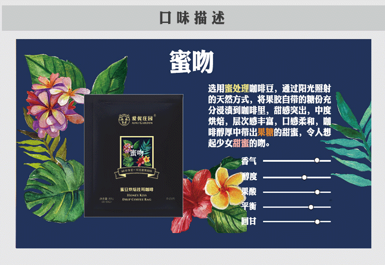 • 商品名稱:愛伲莊園 世界風(fēng)情掛耳咖啡 蜜吻 掛耳咖啡 無糖有