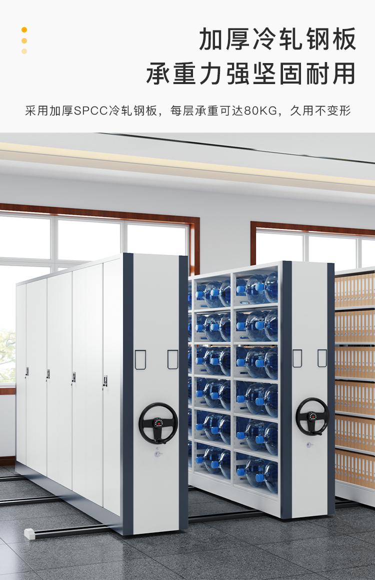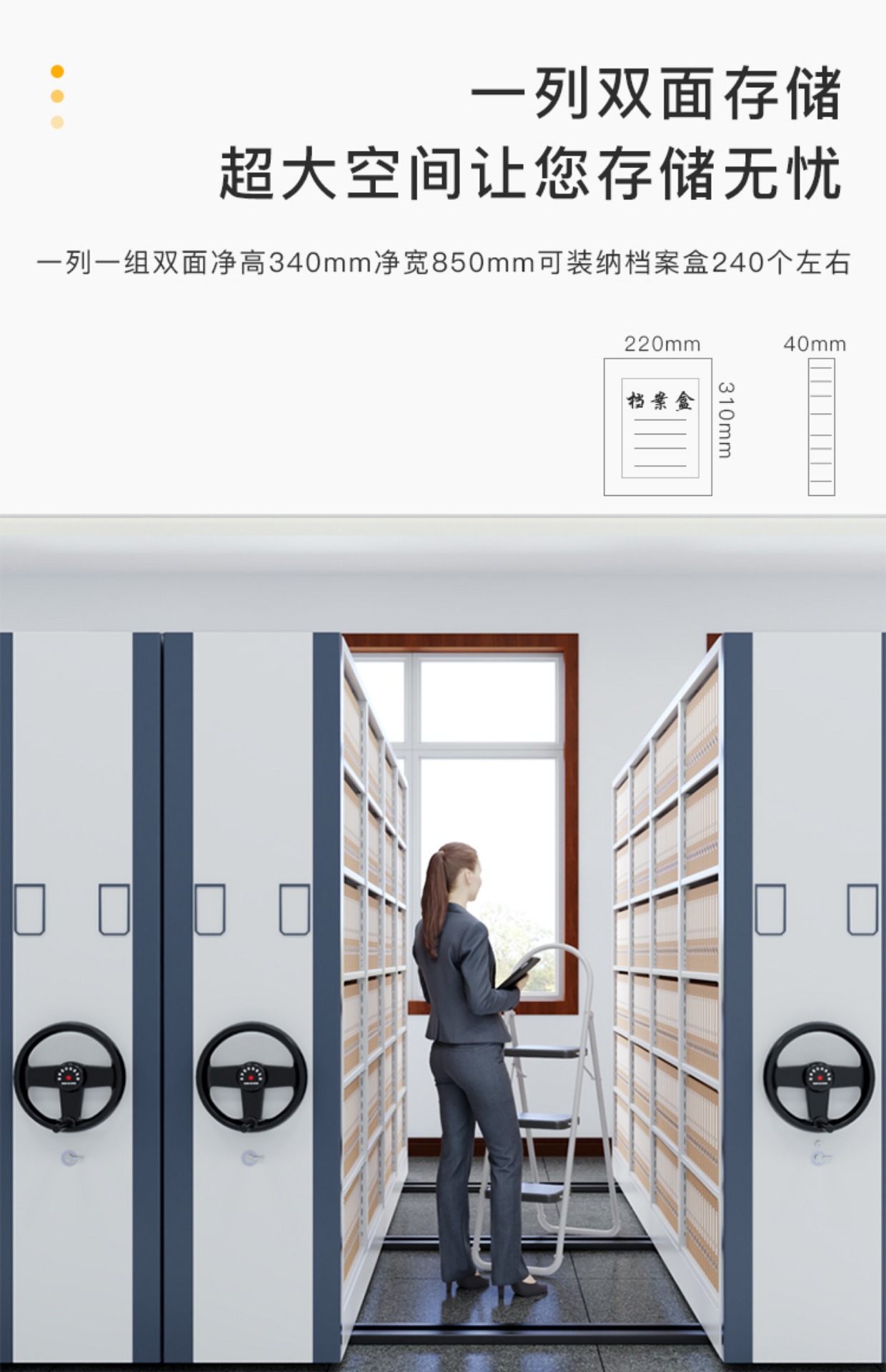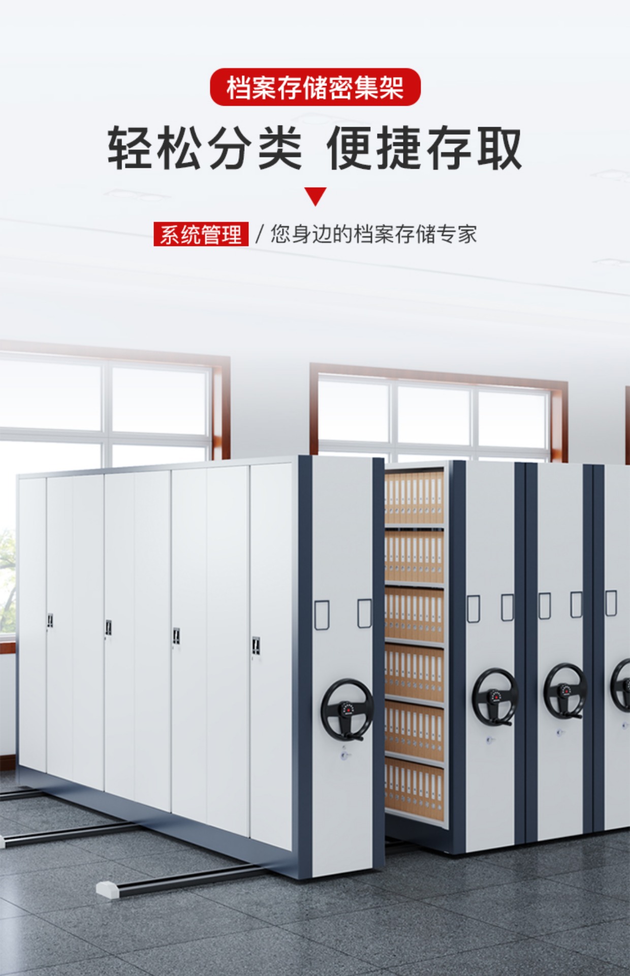 密集架的主要用途是整理資料,儲(chǔ)備資料,檔案等。適用于法院、檢察院、銀行、大型商場(chǎng),學(xué)校,企業(yè)單位資料室、樣品室等存放圖書資料、檔案資料、檔案財(cái)務(wù)憑證、貨物的新型儲(chǔ)物設(shè)備。與傳統(tǒng)式書架、貨架、檔案柜相比,現(xiàn)在密集架更適用于現(xiàn)在都市高效率的辦公環(huán)境