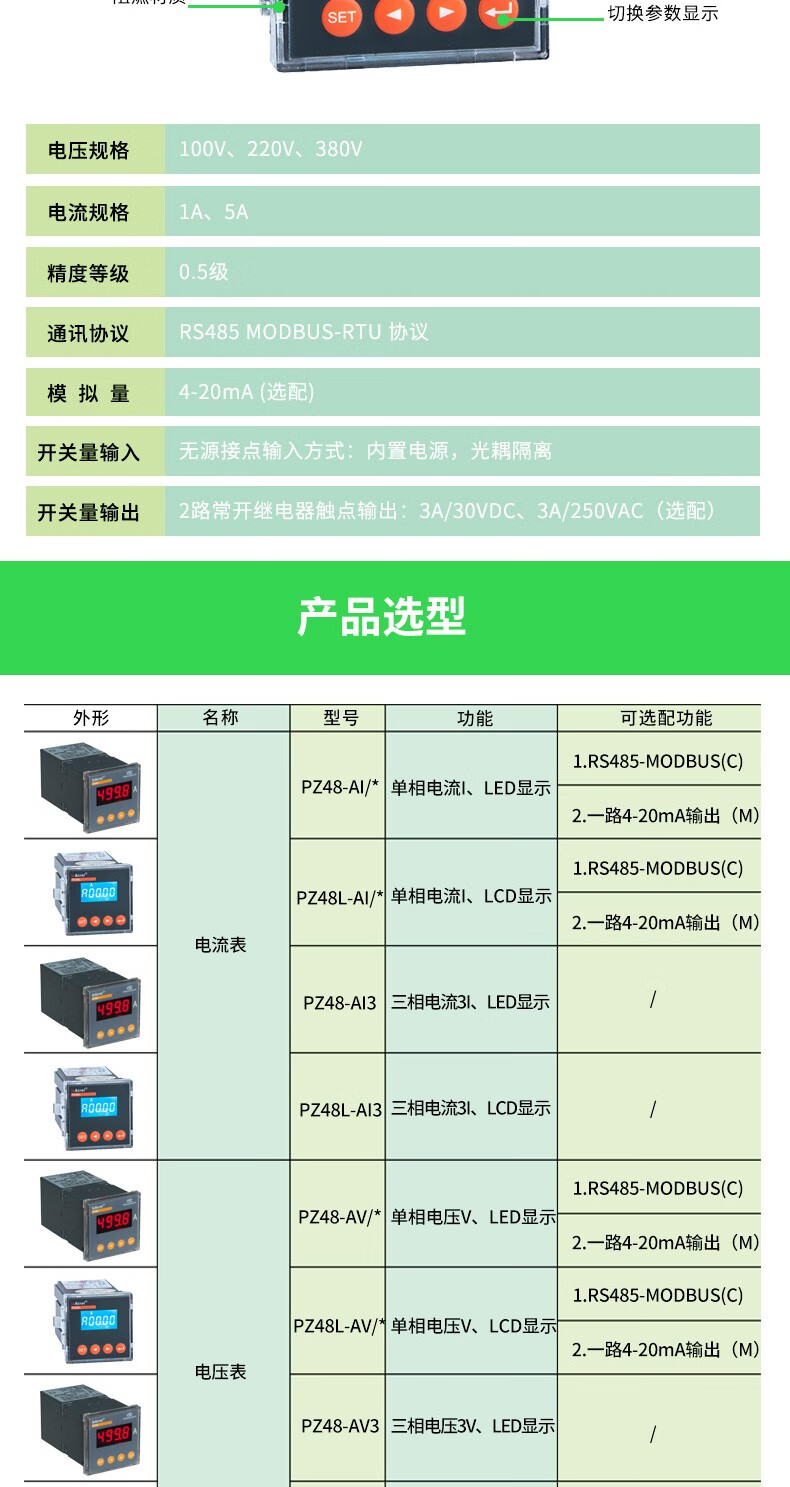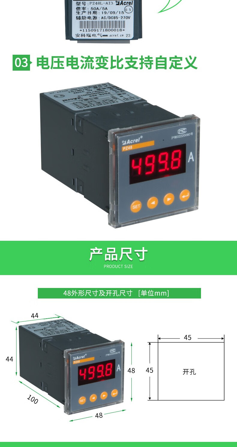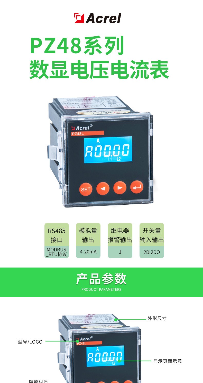 Acrel安科瑞PZ48系列單相/三相數(shù)顯電流表